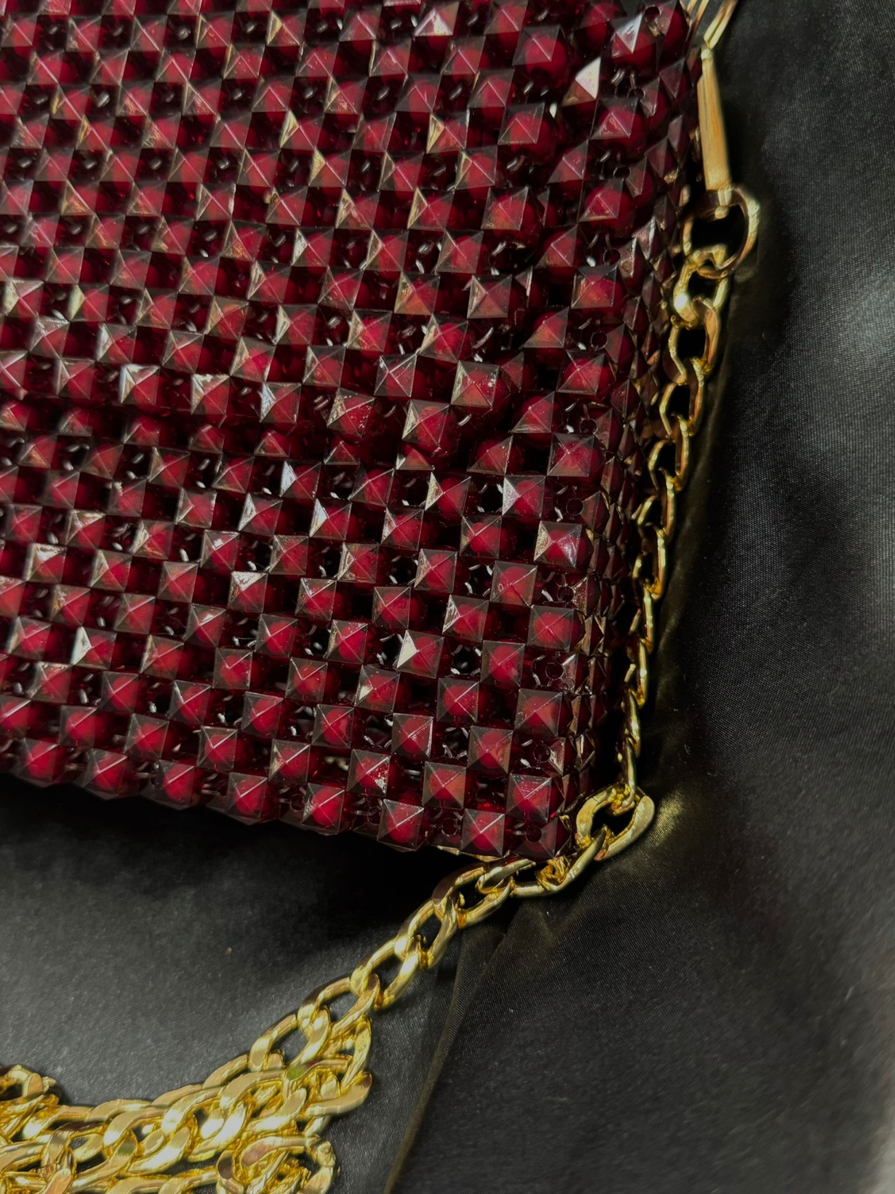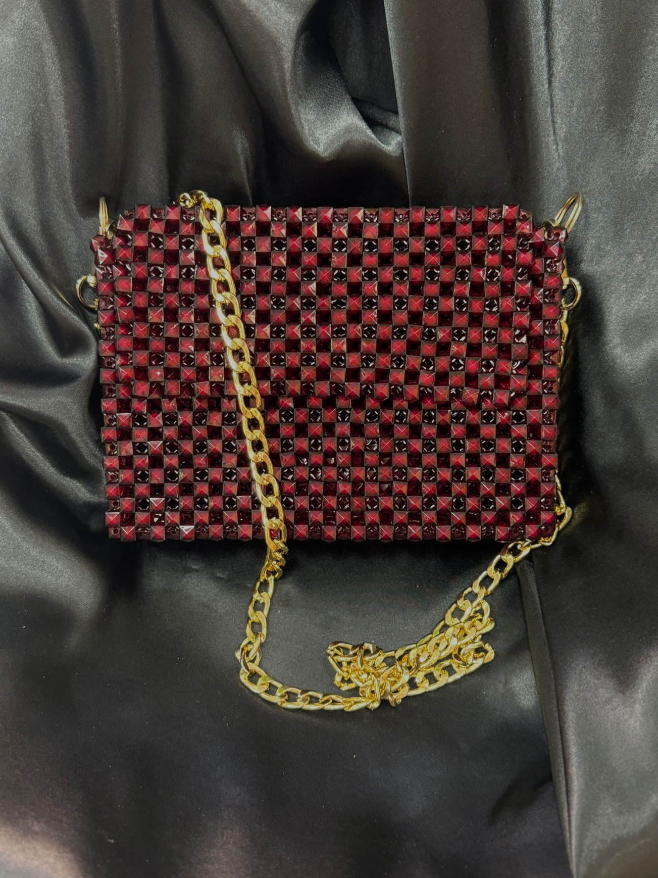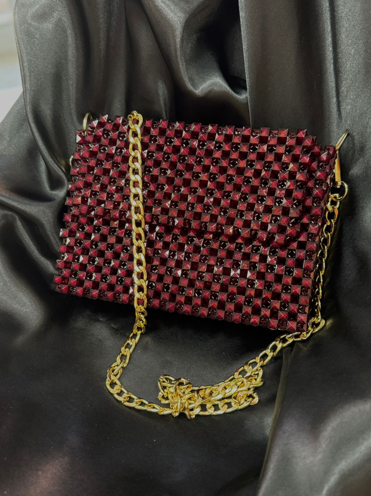 Boncuk Çanta Bordo Zincirli Gold Çanta